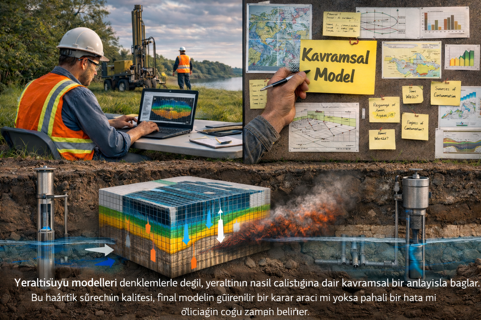 Bir hidrojeolog bilgisayarda modeli çalıştırmadan, hatta “enter” tuşuna basmadan önce çok büyük bir hazırlık süreci yürütür. Bu sürecin adı kavramsal modeldir ve çoğu zaman modelin sonuçlarının anlamlı mı yoksa yanıltıcı mı olacağını belirleyen asıl unsur budur.